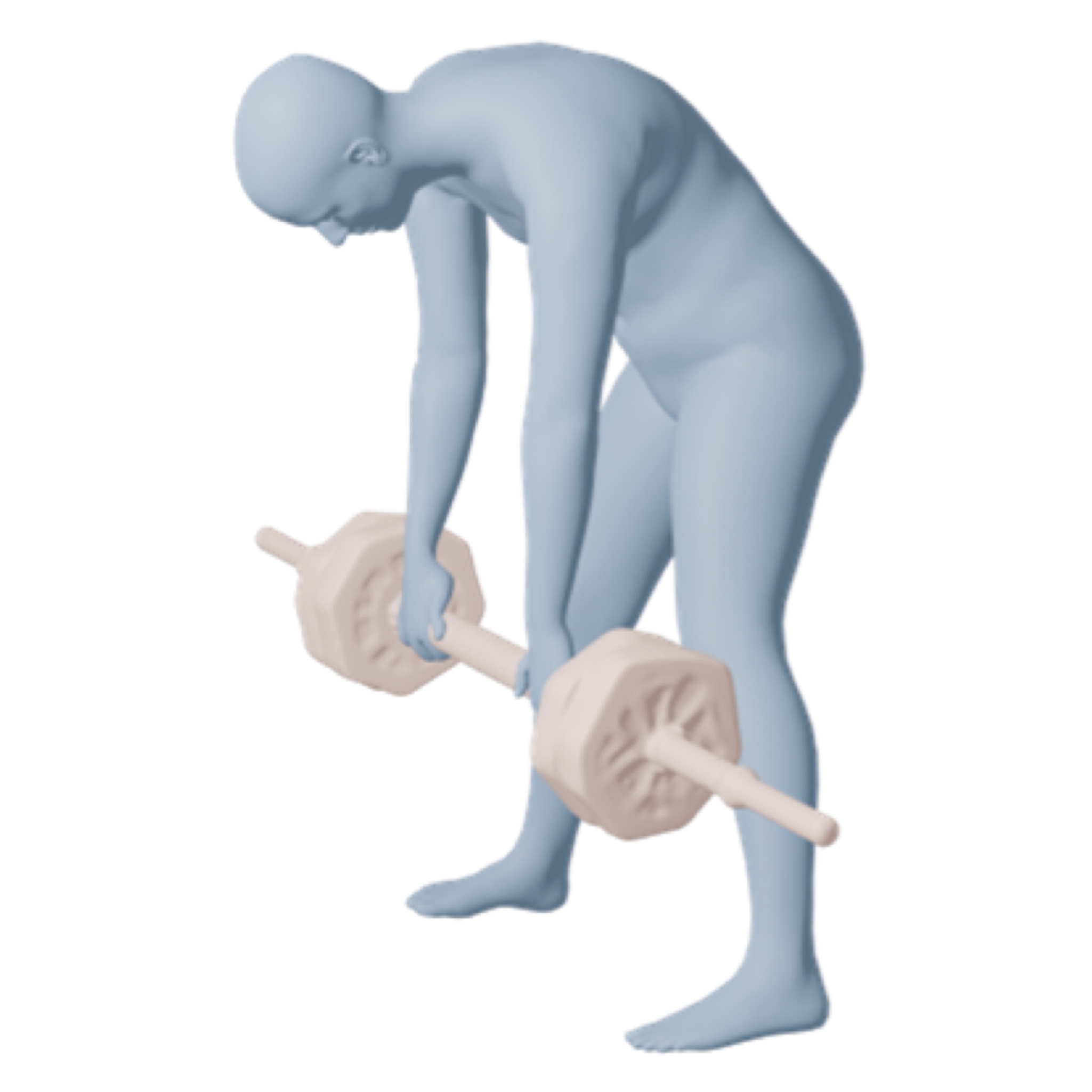 "A person picks up a barbell, which is a large and heavy cylinder, from the ground by grabbing it through two hands, palms hugging its barbell bar, then goes forward, and finally places it on the table."